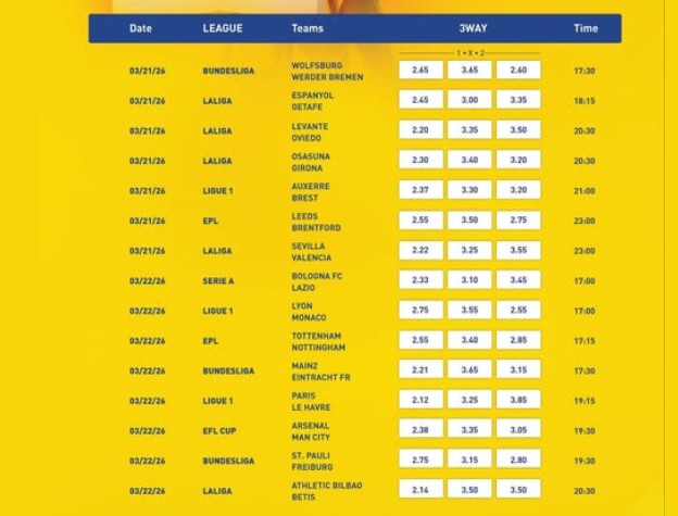 Here are the games for the jackpot: